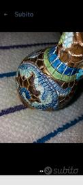 vasoin ceramica di Deruta prodotto da Gialletti, caratterizzato da uno stile bizantino con decorazioni a mosaico e dettagli in oro.