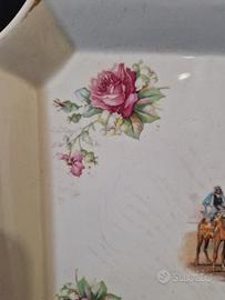 Delizioso Vassoietto Antico della Società Ceramica Lombarda Milano (classico elefante) forma rettangolare con angoli smussati e bordi leggermente rialzati.