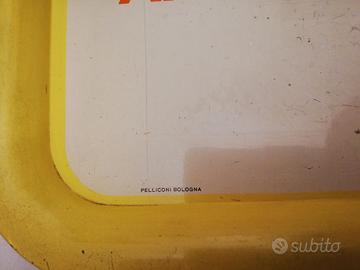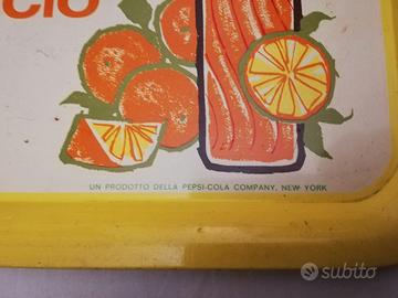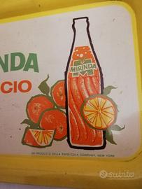 Vassoio in metallo degli anni 60 dimensioni 36 cm per 26 cm prodotto dalla Pelliconi di Bologna per la bibita Mirinda prodotta dalla Pepsi-cola Company NEW YORK. Condizioni come da foto, tracce di ossidazione come da foto . Spese a carico del destinatario.