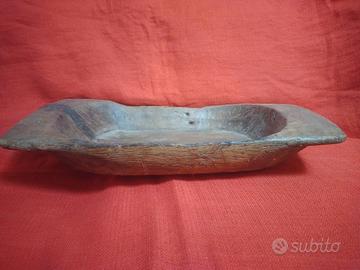 Ciotola o anche vassoio africano in legno con vecchie riparazioni in cultura. Dimensioni cm 52 x 30.