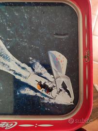Vecchio vassoio in metallo, periodo anni '80. Articolo per collezionisti ed amatori. Misure massime cm. 27,5 x 21, altezza cm. 3. si presenta globalmente bene, Il fondo presenta alcune graffiature/segni di sfregamento.