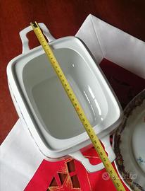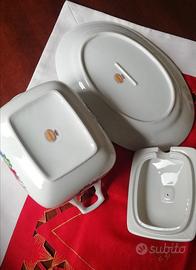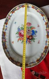 Zuppiera e vassoio/piatto da portata in porcellana Limoges. Vassoio ovale e ciotola rettangolare, con classici disegni floreali di Limoges, anni 60. Nessuna scheggiatura, soltanto il giro oro dei manici un po' sbiadito. Misure in foto.