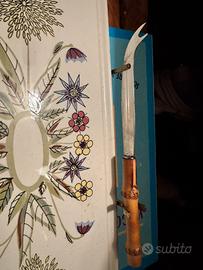 I manici e il manico del coltello abbinato sono in bambù , un elemento di design popolare.