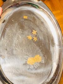 Vassoio in inox 18/10 con decorazioni in oro 24 karati.