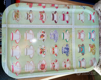 Vassoio in Latta Antico da Servizi Tè e Colazione,English China Tea And Breakfast Services,Decorato di Tazze e Piattini. Anni 70. Altezza cm40.Larghezza cm29.