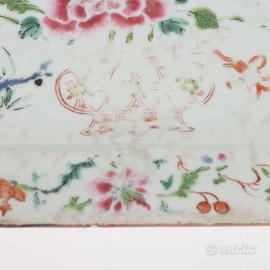 Vassoio da portata in porcellana a pianta rettangolare polilobata, dipinta a smalti 'famille rose'. Nella parte centrale un vaso con una pianta fiorita di peonia. Fiori di peonia, racemi e fiori sui lati. Codice: OGANCE0217363 Condizione prodotto: Oggetto in buone condizioni, presenta segni di usura e sbeccature. Cerchiamo di presentare lo stato reale dell'oggetto nel modo pi completo possibile con le foto. Qualora alcuni particolari non risultassero chiari dalle foto, fa fede quanto riportato nella descrizione. Misure: Largh.:31.00 cm, Alt.:3.00 cm, Prof.:22.00 cm QUESTO ARTICOLO E' DISPONIBILE PRESSO IL NEGOZIO DI CAMBIAGO Venditore: Barbara (dal Luned al Venerd : dalle 9:00 alle 19:00, Sabato: dalle 10:00 alle 19:00) Per maggiori informazioni contattateci su Whatsapp. Disponibile ad inviare video o foto integrative su Whatsapp Di Mano in Mano, Negozio dell'usato di Cambiago, via Castellazzo 8. Oltre 4000mq espositivi, tra usato, vintage, modernariato, antiquariato, arte e libri. Esplora il nostro portale mercatiniusato.org per scoprire centinaia di arredi usati.