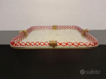 La bordatura in vetro trasparente e rosso dono un tocco di modernità al vassoio.