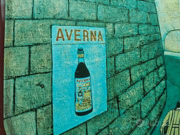 Vassoio vintage usato rettangolare in latta Amaro Averna 40x28 cm