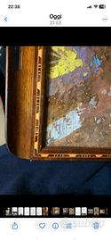 La bella cornice DECO' con manici é in mogano con intarsi in palissandro.