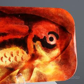 arancio raffigurante pesce. Etichetta della manifattura applicata al verso.