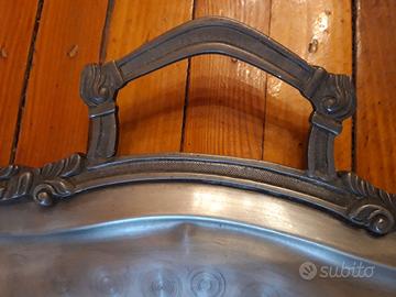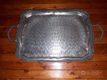 VASSOIO VINTAGE IN PELTRO RETTANGOLARE CON MANIGLIE, DECORATO LUNGO IL BORDO, IN OTTIME CONDIZIONI, MISURE 52 X 32 CENTIMETRI, PESO 1786 GRAMMI. NON UTILIZZO SUBITO PER PAGAMENTO E SPEDIZIONE. SE NON È POSSIBILE UN INCONTRO DIRETTO PER CONCLUDERE LA TRASLAZIONE DEL VASSOIO, IL PAGAMENTO DEVE AVVENIRE ANTICIPATAMENTE TRAMITE BONIFICO O ALTRO SISTEMA DI PAGAMENTO TELEMATICO. PER L’EVENTUALE SPEDIZIONE È UTILIZZATO CORRIERE TRACCIABILE POSTE ITALIANE O CORRIERE GESTITO DELL’ACQUIRENTE. VENDO A 35 EURO