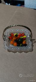 Grazioso mini vassoio in vetro trasparente con decorazioni di frutta in vetro colorato.