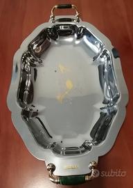 Vassoio Vintage Ovale in Acciaio Inox 18-10 Oro 24K Fiori Serigrafato - USATO 15112