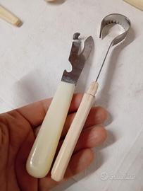 Lotto di vecchi arnesi / utensili da cucina della nonna con il classico manico color latte, un "classico" degli anni 60/ primi 70 ,immancabili nelle cucine italiane di quel periodo.