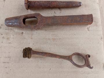Vecchi attrezzi da lavoro in ferro battuto, sembrano attrezzi per svitare ho aprire