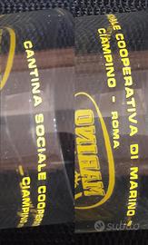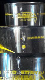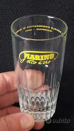 6 vecchi e rari bicchieri pubblicitari (mai utilizzati) , ancora nella scatola originale della Cantina Sociale Cooperativa di Marino, Ciampino - Roma "GOTTO D' ORO - MARINO", storici produttori di vino dei Castelli Romani dal primo dopoguerra.