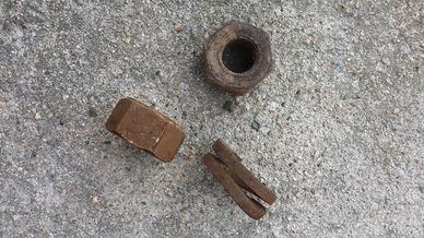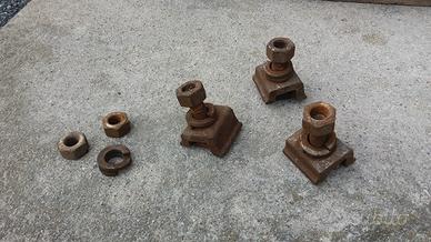 Vendo vecchi chiavardini ferroviari dismessi: sistemi di fissaggio delle rotaie alle traversine di legno, ora vengono utilizzate quelle in cemento.