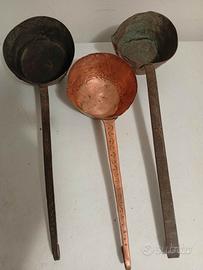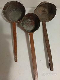 Collezione di vecchi mestoli o casse in rame ,condizioni come da foto. Vendo solo lotto intero.