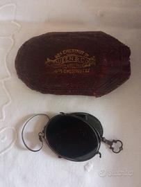 Vecchi pince-nez con lenti da sole, sono del tipo pieghevole, piuttosto rari, con custodia originale molto vissuta, da restaurare