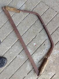 Vecchi attrezzi da falegname. 1 taglia tronchi lungo 140 cm 1 segaccio in ferro lungo 88 cm 1 segaccio in legno lungo 100 cm 1 segaccio in legno lungo 70 cm 20 euro l'uno.