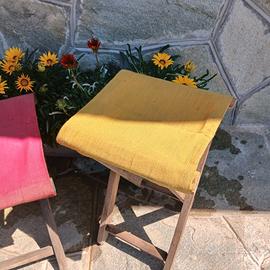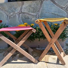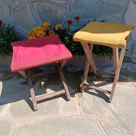 Due sgabelli in legno e tela degli anni 50,robusti e in ottime condizioni,come da foto.