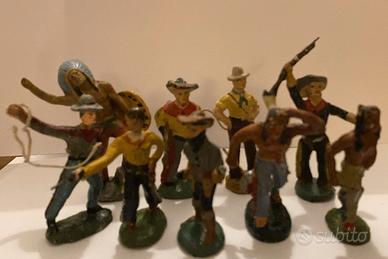 vecchi soldatini cowboy e indiani in plastica