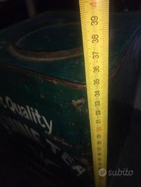 antica scatola latta da tea probabilmente ad uso esclusivo di qualche vecchi negozio drogheria o grossista,