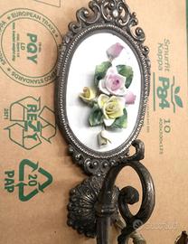 Capodimonte in Bronzo e Porcellana a Savona Vecchia Applique Capodimonte a Savona In Discrete Condizioni - Vintage Ceramica Capodimonte Fregio Fiorito Vintage Completo di Portalampade tipo Portacandela. Fregio Ovale con Fiori Incastonato in Applique di Metallo Massiccio. Fiori di Ottima Fattura e Gradevolezza Attacco Applique Porta Lampadina E 14. Peso 0,9 Kg circa Ritiro Brevimano a Savona