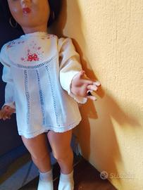 Questa vecchia bambola è stata risistemata ma resta senza un dito nella mano sinistra