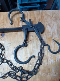 vendo vecchia bilancia in ferro pesa fino a kg 100. Più catena per attaccare le mucche alla mangiatoia e due ganci in ferro battuto per agganciare secchi del latte. vendo in blocco.