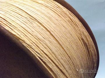Vecchia bobina di cordoncino naturale color avana - simile al cordoncino in carta ed alla paglia di fiume o palustre. Produzione databile agli anni 50-60.