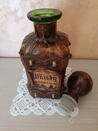 Vecchia bottiglia in vetro rivestita in cuoio vintage "Whisky - Rep. S. Marino". Dimensioni: 29cm altezza Ottime condizioni. Possibile spedizione.