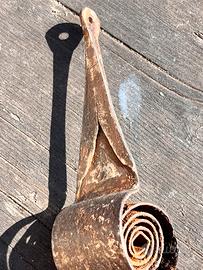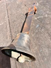 Vecchia campanella in bronzo con molla ribattuta a mano serviva come campanello di casa.