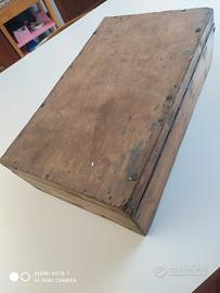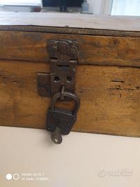 Vecchia cassetta in legno, cm 58x34x16,5, completa di lucchetto. Presenti segni del tempo come visibile nelle foto.
