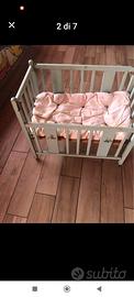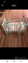 Vecchia culla per bambole penso anni 60 con spondina abbassabile e materassino in crine come una volta bellissima da esporre con bambole mis L 66 P 37 A 60 prezzo non trattabile