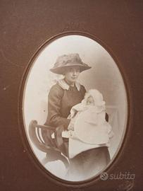 Una foto "maternità", giovane donna con bambino degli anni '10, ovale cm 12,5 x 9 su cartoncino cm 20 x 28. Il cartoncino ha minimi segno, la foto è ottima. Fotografo Donovan Studios - 1 St. James street - Brighton