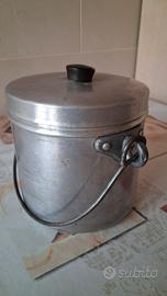 vendo vecchia gavetta a secchiello x mangiare o latte in alluminio robusto con occhielli laterali in metallo...cm 12 x12 solo il contenitore ...ben conservato...si potrebbe usare anche come pentolino vintage
