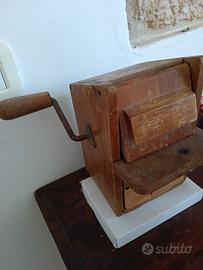 vecchia grattacacia in legno con cassetto in plastica.piccoli lavori di restauro