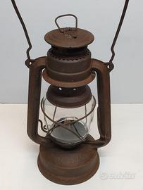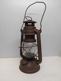 vecchia lanterna a petrolio vintage originale W.Germany funzionante, completa di vetro perfetto . altezza cm 25 (senza manico) è stata lasciata naturale , effetto corten, per libertà di trattamenti o colori di chi l' acquista.