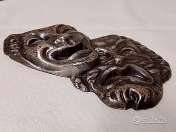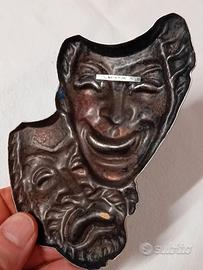 vecchie maschere "simbolo del Teatro", quella che ride e quella che piange, che simboleggiano rispettivamente "la commedia e la gioia" e "la tragedia e il dolore". E' in metallo, in buone condizioni ,marchiate "BERTONI MILANO" , storica Azienda fondata nel 1938, specializzata in targhe, medaglie e trofei ; nel 1995 rinominata "GDE BERTONI".