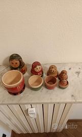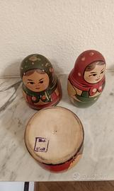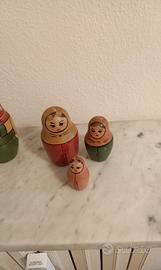 Vecchia matrioska in legno di betulla decorata con motivi tradizionali acquistata in URSS negli anni '60. Sono cinque elementi ancora in perfette condizioni malgrado gli anni.