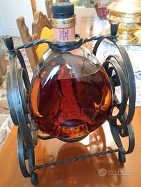Bottiglia vecchia Romagna etichetta nera, su piedistallo, altezza cm 32, larghezza cm 21.5, almeno 50 anni di invecchiamento; preferibile consegna a mano