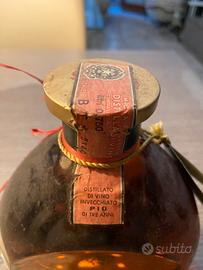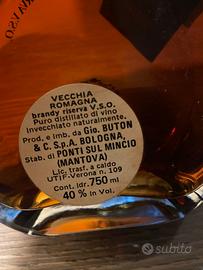 Bottiglia da collezione di Brandy italiano storico, prodotta tra il 1970 e 1974 dalla distilleria Gio.Buton & c. SpA Bologna. Bottiglia rara e autentica tenuta esclusivamente da collezione. Sigillo di stato originale rosso e tappo in metallo dorato con cordino e fascetta originali. Etichetta e bottiglia in ottime condizioni generali. Livello del liquido molto buono. 750 ml - 40% vol.
