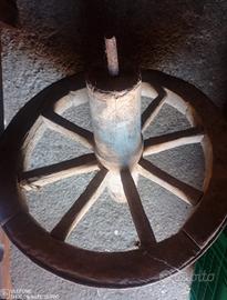 Ruota in legno di vecchia cariola vintage. Bella da collezione, o per fare un lampadario per una taverna o in un rustico .