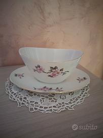 Vecchia salsiera con piattino in porcellana vintage marchiata "Seltmann Weiden Bavaria - Monika" decorata con motivi floreali denominati "Fiori di pesco" e rifiniture in oro sul bordo. Anni '50 Dimensioni: 20x15cm base piattino; 15x10.5cm salsiera. Ottime condizioni. Possibile spedizione.