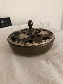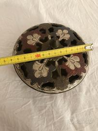 Bruciatore di incenso , resina o erbe aromatiche cm 14 di diametro in ottone con motivi floreali smaltata vintege