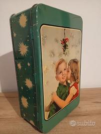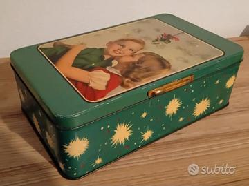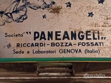 Vecchia e bella scatola di latta "Pane degli Angeli " anni 50/60 , qualche inevitabile segno del tempo ma sostanzialmente in buone condizioni. Dimensioni: cm. 25,5 x 16 x h. 8,5.