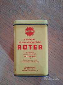 Vecchia scatola in latta ROTER da 120 tavolette ulcero stomachiche, antiulcera gastro-duodenale.