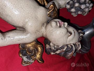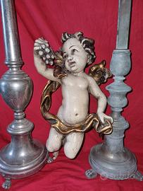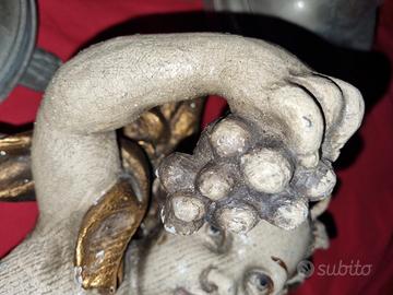 Bella e vecchia scultura in legno / putto / cupido/Angelo con uva , splendidamente scolpita e dipinta da maestro scultore.
