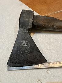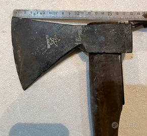 Vendo vecchia accetta boscaiolo. Incisione con fiore a 5 petali marcato RUBINO. Dimensioni visibili da immagini allegate.